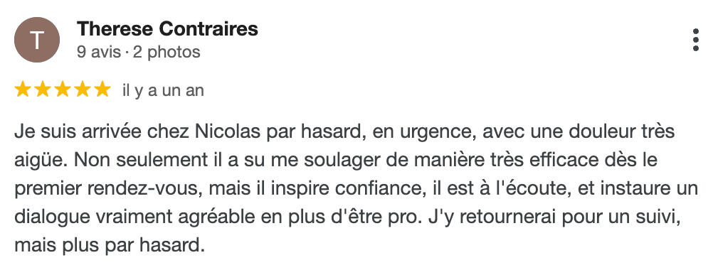 En cas d'urgence (ou si vous n'avez pas de profil Doctolib) vous pouvez me joindre au 06 71 66 94 23